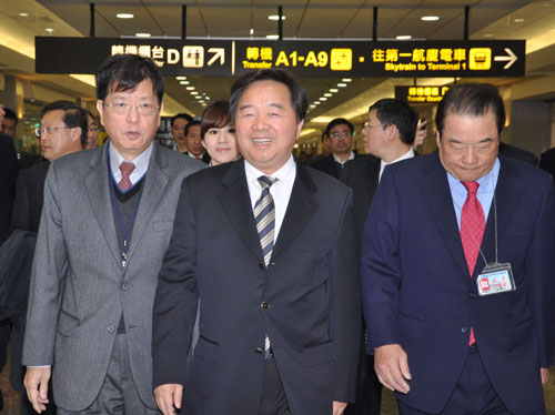 季建業(yè)率領(lǐng)代表團(tuán)體抵達(dá)桃園機(jī)場時(shí),由臺灣工業(yè)總會理事長陳武雄等人接機(jī)。