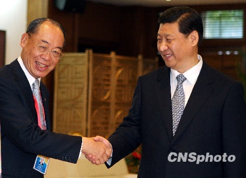 資料圖:2010年4月10日下午,國(guó)家副主席習(xí)近平在海南會(huì)見(jiàn)前來(lái)參加“博鰲亞洲論壇2010年年會(huì)”的臺(tái)灣兩岸共同市場(chǎng)基金會(huì)最高顧問(wèn)錢(qián)復(fù)。 中新社發(fā) 任晨鳴 攝