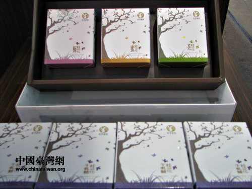 臺(tái)中市東勢(shì)區(qū)大茅埔社區(qū)帶來了眾多桂花相關(guān)產(chǎn)品,圖為包裝精致的多種類桂花糖。(中國(guó)臺(tái)灣網(wǎng) 馬迪 攝)