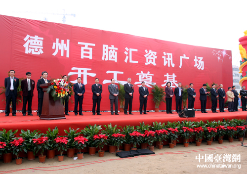 中國(guó)臺(tái)灣網(wǎng)4月23日德州消息 4月21日,由臺(tái)灣藍(lán)天集團(tuán)投資的德州百腦匯資訊廣場(chǎng)項(xiàng)目開(kāi)工奠基儀式在山東德州隆重舉行。山東省臺(tái)辦副主任曹曉武,臺(tái)灣藍(lán)天集團(tuán)副董事長(zhǎng)、總經(jīng)理、百腦匯總裁蔡明賢,德州市領(lǐng)導(dǎo)吳翠云、陳先運(yùn)、滿春重、韓建亭、翟長(zhǎng)生,市臺(tái)辦主任邢躍升出席儀式。