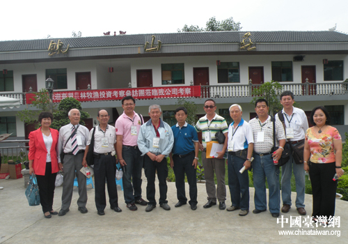 考察團(tuán)一行在考察興仁縣金鯢野生動(dòng)物養(yǎng)殖有限公司時(shí)合影留念。(黔西南州臺(tái)辦 李席虎 攝)