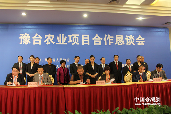 此次懇談會共集中簽約了10個農(nóng)業(yè)合作項目,分別為:焦作市海峽兩岸科技合作中心項目,焦作市臺灣精致農(nóng)業(yè)示范園項目、焦作市臺灣養(yǎng)生食品園項目、焦作市云臺山萬畝高效農(nóng)業(yè)產(chǎn)業(yè)綜合建設(shè)項目、漯河市現(xiàn)代農(nóng)業(yè)示范區(qū)建設(shè)、鄭州市有機(jī)葡萄標(biāo)準(zhǔn)化栽培及新品種引種示范項目,鄭州市白寨村農(nóng)業(yè)種植休閑觀光園建設(shè)項目、許昌市有機(jī)農(nóng)業(yè)生產(chǎn)基地建設(shè)項目、商丘市夏邑縣食用菌加工生產(chǎn)項目以及永城市小麥產(chǎn)業(yè)鏈深加工食品園項目等。(中國臺灣網(wǎng)記者 普燕)