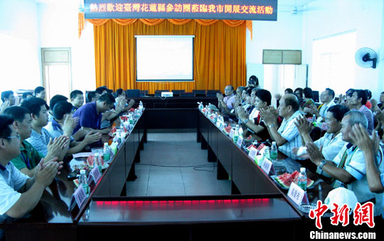 中新網(wǎng)來賓6月20日電(記者 蒙鳴明)臺灣花蓮縣參訪團(tuán)一行33人6月20日來到廣西來賓市鳳凰鎮(zhèn)龍旺村,考察大陸新農(nóng)村建設(shè),仔細(xì)詢問當(dāng)?shù)剞r(nóng)業(yè)發(fā)展情況,并與當(dāng)?shù)卮迕窦班l(xiāng)鎮(zhèn)干部座談交流。