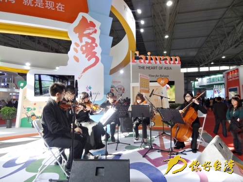 此次旅交會(huì)現(xiàn)場(chǎng),臺(tái)灣館系以創(chuàng)新展攤設(shè)計(jì)手法,展現(xiàn)“臺(tái)灣觀光年歷”主題活動(dòng),及“臺(tái)灣好行”、“臺(tái)灣觀巴”等臺(tái)灣豐富多元的觀光資源,也充分表達(dá)臺(tái)灣推動(dòng)團(tuán)客優(yōu)質(zhì)行程及個(gè)人自由行兩大主軸的鮮明意象,參觀展覽的民眾均相當(dāng)熱絡(luò)的向臺(tái)灣館服務(wù)人員索取資料,及咨詢臺(tái)灣旅游訊息;另臺(tái)灣館也結(jié)合臺(tái)灣參展代表團(tuán)及表演團(tuán)體,擴(kuò)大營(yíng)銷宣傳力度,還特地從臺(tái)灣邀請(qǐng)?jiān)诘貙耀@殊榮的“樂興之時(shí)”室內(nèi)樂團(tuán)在展場(chǎng)現(xiàn)場(chǎng)定時(shí)表演,帶來具有臺(tái)灣特色的名謠演奏,悠揚(yáng)樂聲伴隨會(huì)場(chǎng)熱絡(luò)交流,將氣氛帶到最高點(diǎn),深獲參觀民眾一致好評(píng)。