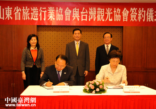 中國臺灣網(wǎng)10月31日臺北消息 日前,山東省旅游局和臺灣觀光協(xié)會在臺北圓山飯店簽訂合作協(xié)議,山東省旅游局于沖局長、臺灣觀光協(xié)會賴瑟珍會長代表魯臺雙方在合約上簽字。山東省夏耕副省長、臺灣觀光協(xié)會張學勞榮譽會長、山東省臺辦張雪燕主任等見證了簽字活動。