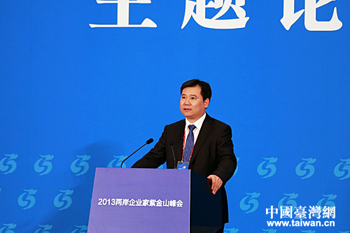 蘇寧集團董事長張近東在“2013兩岸企業(yè)家紫金山峰會”主題論壇上演講。(中國臺灣網 王偉攝)