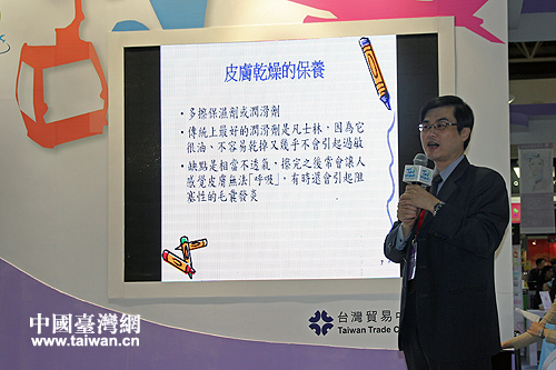 臺(tái)灣醫(yī)師現(xiàn)場(chǎng)講解皮膚保養(yǎng)小竅門。(中國(guó)臺(tái)灣網(wǎng) 馬迪 攝)