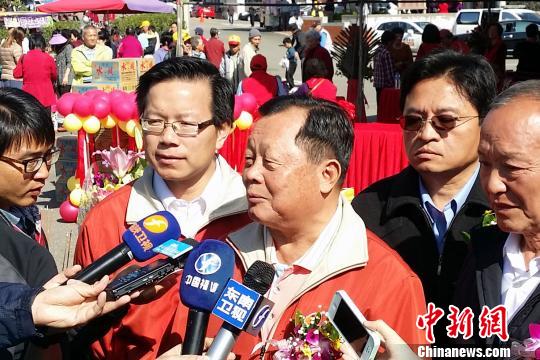 12月6日,臺(tái)灣第1艘原裝全太陽能發(fā)電游艇在風(fēng)光明媚的苗栗縣明德水庫(kù)首航。圖為苗栗縣劉政鴻接受大陸媒體采訪!∮^光業(yè)者提供 攝