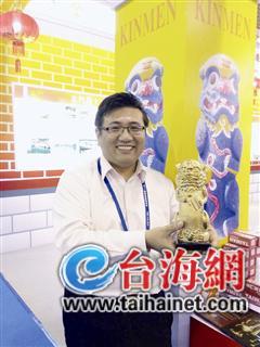 金豬金雞金茶杯,滿眼都是土豪金。這是金門宏玻陶瓷廠在旅博會金門館陶瓷展品的最大特色——金燦燦、亮閃閃。