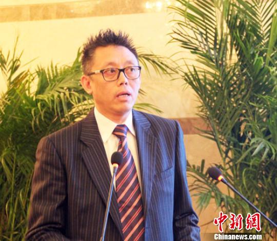 5月28日,2015海峽兩岸中小企業(yè)合作(望都)交流會(huì)開幕。圖為河北省臺(tái)辦副主任郭若定到會(huì)致辭!∮诳×痢z