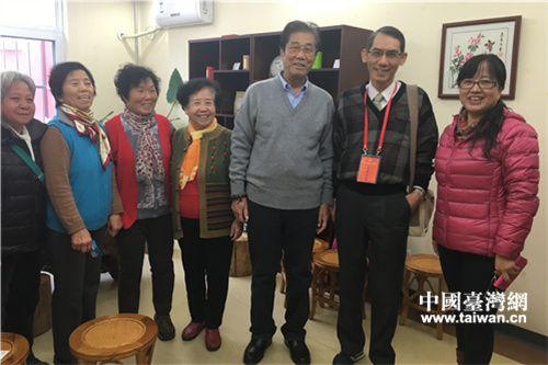 高雄本安里里長(zhǎng)林辛福擔(dān)任核桃園社區(qū)榮譽(yù)主任,到為老中心與社區(qū)大媽喝茶,話家常。(中國(guó)臺(tái)灣網(wǎng) 段雯婷 攝)