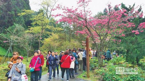 阿里山花季,12、13日有2.5萬(wàn)名賞花客,其中逾萬(wàn)人是陸客團(tuán)。(中時(shí)報(bào)系資料照片)