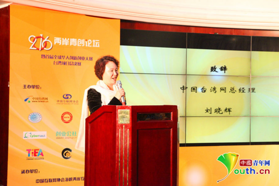 劉曉輝指出,大陸堅持創(chuàng)新驅(qū)動發(fā)展戰(zhàn)略,出臺了一系列支持青年創(chuàng)新創(chuàng)業(yè)的優(yōu)惠政策,大陸創(chuàng)新創(chuàng)業(yè)門檻更低,成本更小,速度更快。在這樣的大環(huán)境下,臺灣青年來大陸創(chuàng)業(yè)迎來了蓬勃生機和廣闊的發(fā)展空間。去年,國臺辦在北京、上海、江蘇、浙江、福建、湖北、廣東等地設(shè)立了21家“海峽兩岸青年創(chuàng)業(yè)基地”及1家“海峽兩岸青年就業(yè)創(chuàng)業(yè)示范點”。中國臺灣網(wǎng)順應(yīng)時代發(fā)展潮流,積極整合各方資源,在融資、人才服務(wù)、創(chuàng)業(yè)輔導(dǎo)等方面提供資訊服務(wù),積極營造兩岸青年協(xié)同創(chuàng)新創(chuàng)業(yè)的生態(tài)圈。去年11月在“2015年兩岸青創(chuàng)論壇”上發(fā)布了六組優(yōu)秀創(chuàng)業(yè)項目路演,其中來自臺灣的“春浪音樂節(jié)”與新光兩岸青年創(chuàng)業(yè)基金現(xiàn)場簽約!拔覀兘裉斓男∑髽I(yè),未來就有可能脫穎而出,成為享譽世界的‘小巨人’!