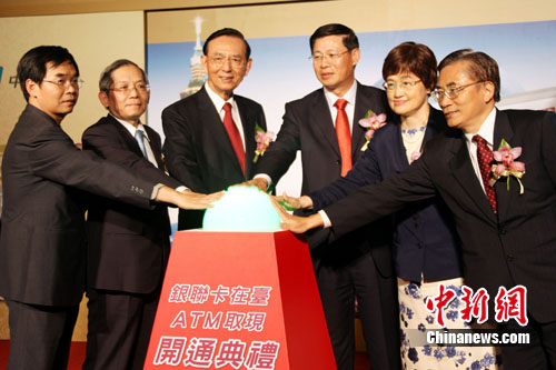 6月30日,中國(guó)銀聯(lián)、臺(tái)灣財(cái)金公司、臺(tái)灣銀行公會(huì)舉行記者會(huì),宣布銀聯(lián)卡在臺(tái)ATM提領(lǐng)新臺(tái)幣、預(yù)借現(xiàn)金及余額查詢服務(wù)正式開(kāi)通。