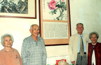 薛秋帆夫婦(右)與蔡騰芳夫婦(左)在薛秋帆贈(zèng)送的牡丹畫前留影。