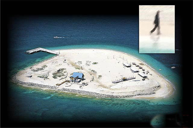 險礁嶼周邊因水淺,警艇無法靠近,夏姓臺商一度只能焦急地在島上走動待援。圖片來源:臺灣媒體