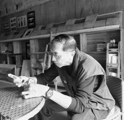 黃浪華在雕刻石頭