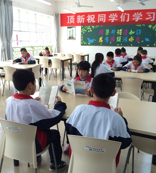 全南縣第四小學(xué)的學(xué)生在圖書(shū)室內(nèi)閱讀