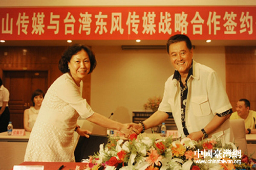 7月25日,臺灣東風(fēng)衛(wèi)視掌門人、“臺灣綜藝之母”葛福鴻率隊到沈陽大舞臺,與本山傳媒正式簽約,兩岸兩大傳媒,未來將展開多項深度密切的合作。趙本山與葛福鴻在簽約儀式上表達(dá)了對未來成功合作的期待,與葛福鴻一同前來的臺灣著名主持人吳宗憲、侯佩岑;趙本山的得意門生小沈陽、張小飛出席簽約儀式。趙本山更是當(dāng)眾表態(tài),“我就想把大舞臺開到臺灣去!薄