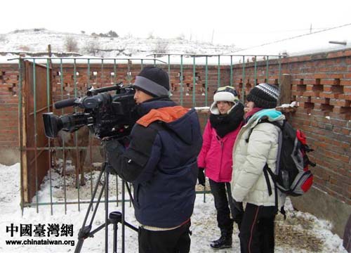 臺(tái)灣中天電視臺(tái)《臺(tái)灣腳逛大陸》攝制組在遼寧省鐵嶺市西豐縣鹿場(chǎng)現(xiàn)場(chǎng)拍攝(圖片來源:鐵嶺市臺(tái)辦)
