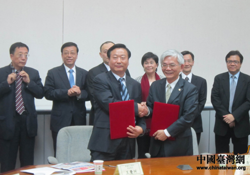 葫蘆島市日?qǐng)?bào)社與臺(tái)灣旺報(bào)簽約。(圖片來(lái)源:葫蘆島市臺(tái)辦)