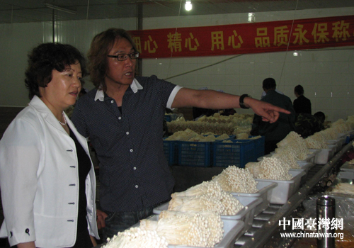 丹東市臺辦主任李秀環(huán)一行參觀金針菇生產車間。(圖片來源:丹東市臺辦)