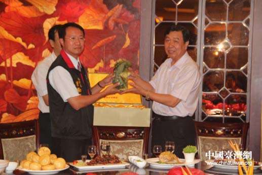 贈(zèng)送禮品。(圖片來源:鞍山市臺(tái)辦)