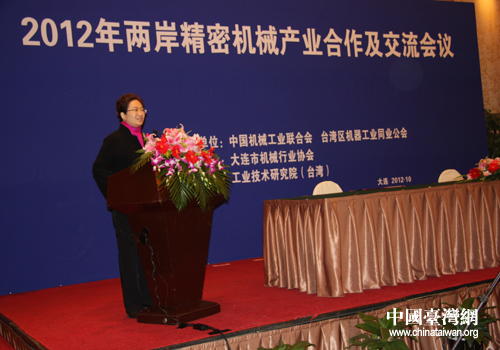 中國臺灣網(wǎng)10月18日大連消息 10月16日,由中國機(jī)械工業(yè)聯(lián)合會(中機(jī)聯(lián))和臺灣區(qū)機(jī)械工業(yè)同業(yè)公會共同主辦、大連市人民政府承辦的“2012年兩岸精密機(jī)械產(chǎn)業(yè)合作及交流會議”在大連富麗華大酒店舉辦。來自兩岸精密機(jī)械產(chǎn)業(yè)界的企業(yè)家、專家學(xué)者及相關(guān)負(fù)責(zé)人共計(jì)100余人出席會議。大連市委常委、副市長曹愛華,中機(jī)聯(lián)會長王瑞祥及臺灣區(qū)機(jī)器工業(yè)同業(yè)公會理事長徐秀滄等出席會議并分別致辭。