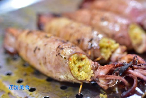 黃金賊的店門(mén)口,隊(duì)伍永遠(yuǎn)很長(zhǎng)。我想,即使沒(méi)有當(dāng)?shù)嘏笥训耐扑],光是沖著“黃金賊”這個(gè)名字,我也必須得品嘗一下。黃金賊就是將燉飯塞在烏賊內(nèi),在下油鍋去炸到金黃色,就變成一道夜市美食。