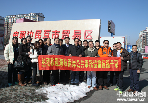 中國臺灣網(wǎng)3月2日丹東訊 2月26日,臺灣海峽兩岸公共事務(wù)協(xié)會遼寧參訪團(tuán)在丹參訪期間,對中朝邊民互市貿(mào)易區(qū)進(jìn)行考察。省、市臺辦及相關(guān)人員陪同考察。
