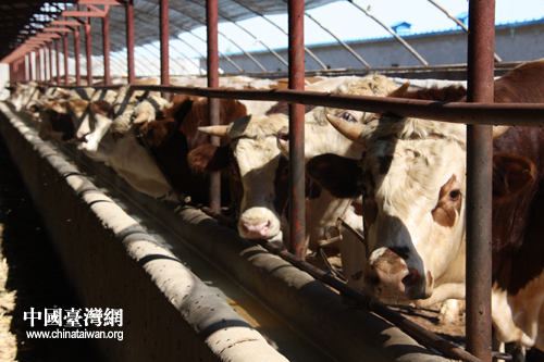 祥林育肥牛場里飼養(yǎng)的黃牛(中國臺灣網(wǎng) 陳寧 攝)