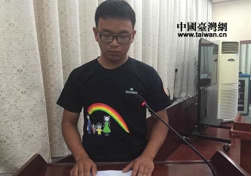 王磊同學(xué)在發(fā)放儀式上講話(中國臺灣 蕪?fù)瑪z)