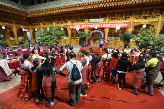 兩地少數(shù)民族代表在循化的聯(lián)歡會上共舞