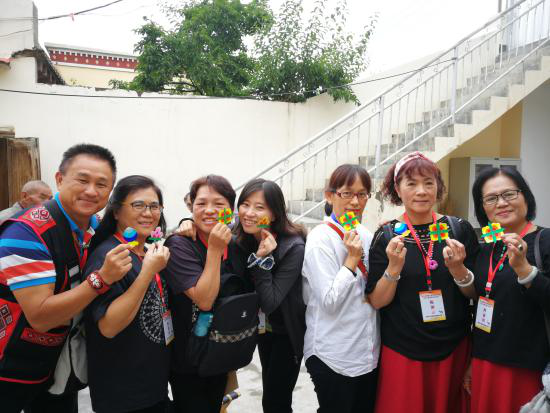 在黃南藏族自治州同仁縣,交流團一行深入到年都乎村“熱貢藝人之家”,參觀了精美絕倫的堆秀藝術,在當?shù)厮嚾说闹笇,親身體驗了堆繡制作。次日,臺灣少數(shù)民族人士走進黃南州熱貢藝術博物館,詳細了解藏族文化,領略唐卡、泥塑等別具特色的文化藝術。