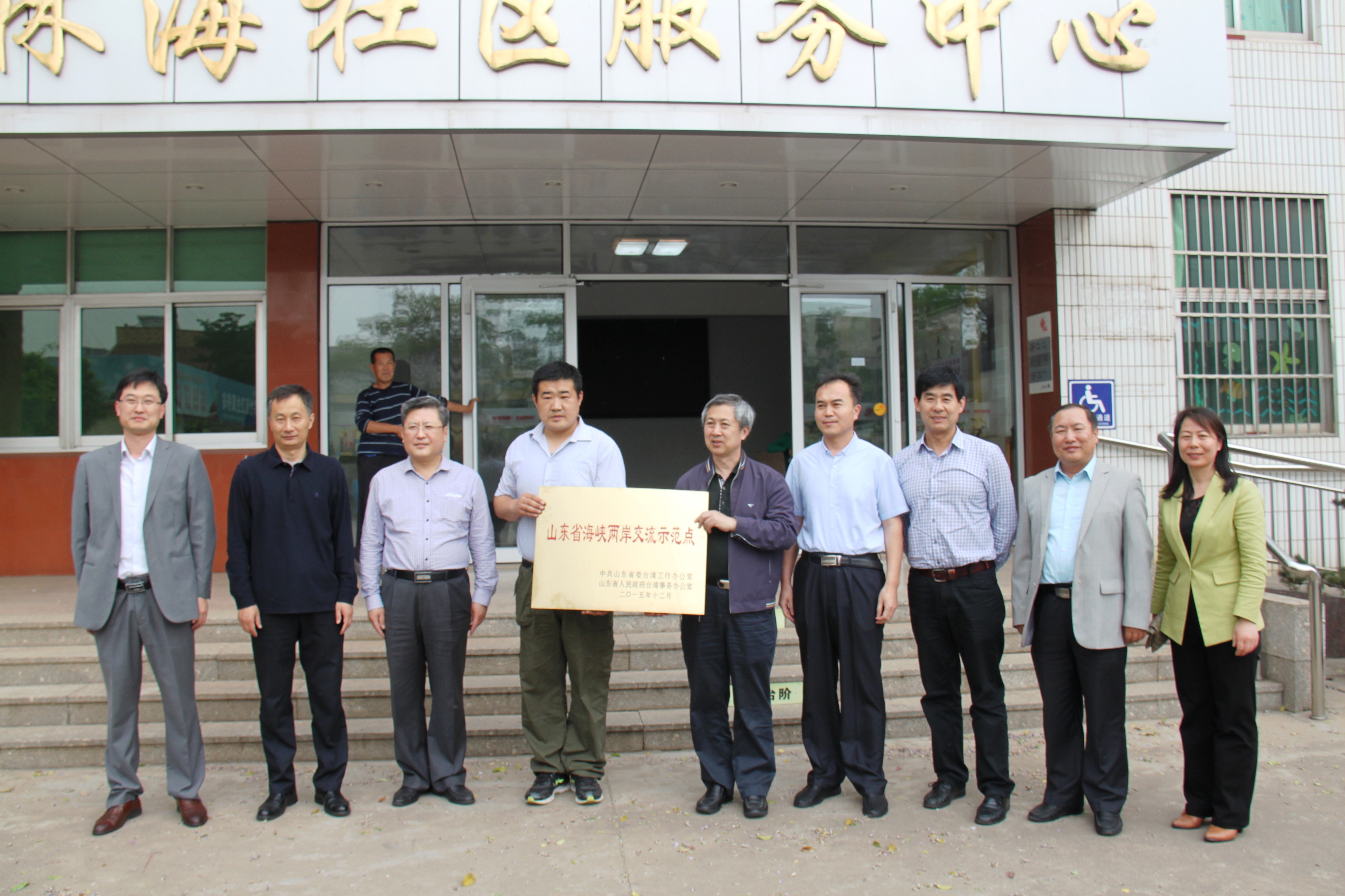 5月12日,山東省海峽兩岸交流示范點授牌儀式在日照市東港區(qū)林海社區(qū)舉行。省臺辦曹曉武副主任、郇新安處長以及市臺辦、東港區(qū)、街道社區(qū)負(fù)責(zé)同志、社區(qū)居民代表出席授牌儀式。林海社區(qū)被授予省海峽兩岸交流示范點以來,認(rèn)真落實示范點建設(shè)要求,加強(qiáng)與臺灣友好社區(qū)高雄市青島里的聯(lián)絡(luò)交流,積極開展關(guān)心關(guān)愛臺胞、臺屬活動,較好地發(fā)揮了交流示范點作用。年內(nèi),推動日照職業(yè)技術(shù)學(xué)院、嵐山金星農(nóng)業(yè)科技有限公司、莒州博物館等申報海峽兩岸交流示范點,進(jìn)一步夯實了基層對臺交流平臺。