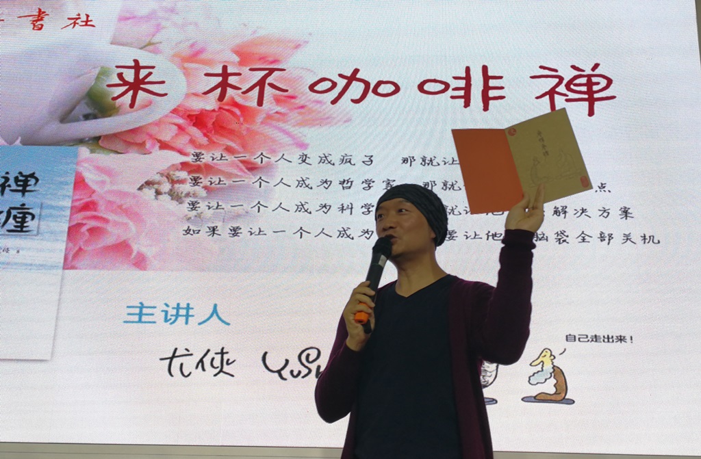 5月31日下午,山東出版?zhèn)髅焦煞萦邢薰舅鶎冽R魯書社力邀臺(tái)灣著名畫家尤俠攜新作《參禪參纏》在山東館舉辦了“來杯咖啡禪”主題推介會(huì),山東出版集團(tuán)總編輯遲云等出席。本次推介會(huì)以齊魯書社禪學(xué)普及系列圖書(《一字禪》《佛典之語》《滴水禪》《品味佛家智慧》)的最新品種《參禪參纏》為以依托,尤俠先生以咖啡禪為題,通過幾個(gè)讀者生活中常見的人生問題,妙趣橫生地解讀了身邊的生活禪,運(yùn)用禪學(xué)智慧,讓讀者生活更簡潔,更輕松。