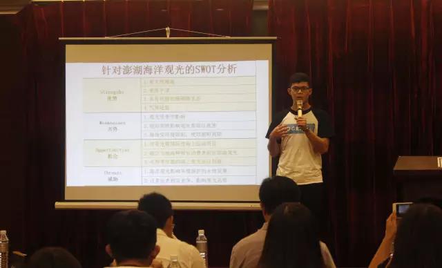 第一小組首先登場,他們以海洋觀光與環(huán)境的永續(xù)經(jīng)營為題,展示了摩托車、浮潛、環(huán)境保育與污染的基本知識,并針對澎湖海洋觀光進(jìn)行了專業(yè)的SWOT分析。