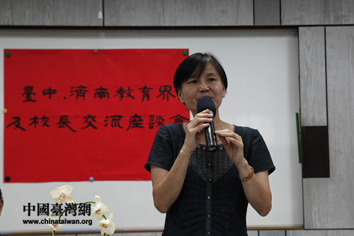 霧峰小學校長許慰敏向參訪團介紹學校概況(中國臺灣網(wǎng) 邢同林 攝)