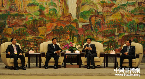 海協(xié)會(huì)會(huì)長(zhǎng)陳云林、上海市副市長(zhǎng)姜平、海協(xié)會(huì)副會(huì)長(zhǎng)王在希參加會(huì)見(jiàn)。(中國(guó)臺(tái)灣網(wǎng)上海臺(tái)辦通訊員常志康)