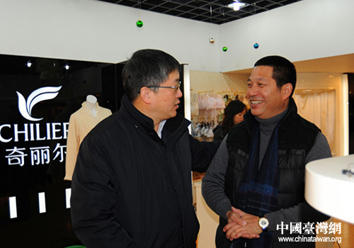 中國臺灣網(wǎng)1月10日上海消息 日前,上海市臺辦巡視員季平來到位于嘉定區(qū)工業(yè)區(qū)的臺資企業(yè)、上海奇麗爾制衣有限公司,親切慰問董事長陳進(jìn)賢,陳佐際、宋惠明等隨同參加。陳進(jìn)賢介紹了近年企業(yè)經(jīng)營、進(jìn)步發(fā)展的概況,并對今年市場作了預(yù)測。