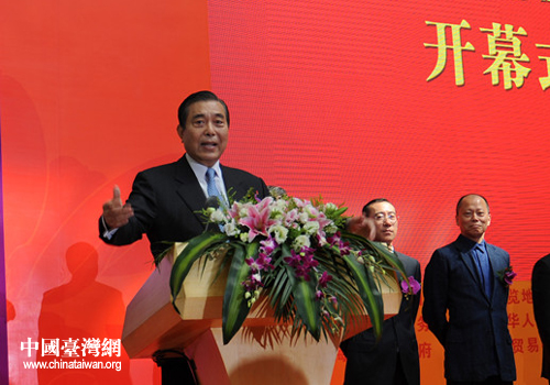 王志剛在臺灣名品博覽會上致辭。(上海市臺辦 常志康 攝)