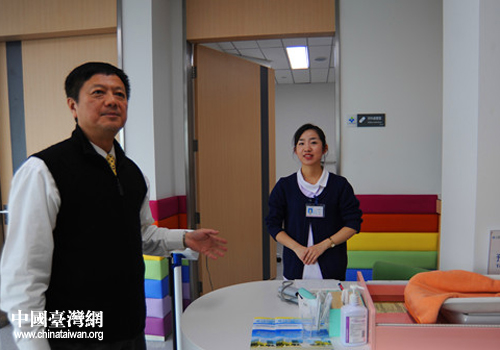 禾新醫(yī)院副院長周明仁介紹禾新醫(yī)院優(yōu)質(zhì)設(shè)備。(上海市臺(tái)辦 常志康 攝)