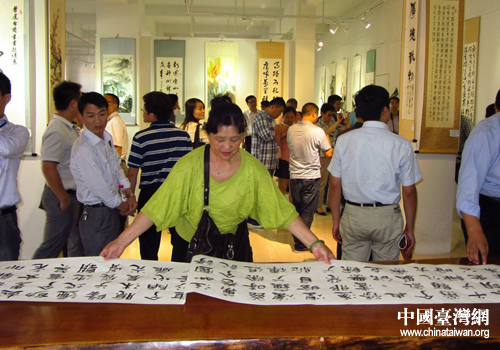 中國(guó)臺(tái)灣網(wǎng)9月28日江蘇海安消息 9月27日至30日,曾在兩岸引起強(qiáng)烈反響的首屆“中華情·兩岸緣”臺(tái)商臺(tái)胞書(shū)畫(huà)展在江蘇省海安縣國(guó)家級(jí)“5-23”文化產(chǎn)業(yè)主題公園舉行巡展。這次書(shū)畫(huà)展由中國(guó)華藝廣播公司華廣網(wǎng)、上海市臺(tái)灣同胞投資企業(yè)協(xié)會(huì)和臺(tái)灣中華新世代藝術(shù)文化交流協(xié)會(huì)共同主辦,今年6月底在上海進(jìn)行了首次展出。