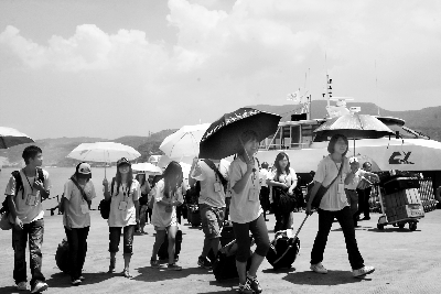 17日上午11時40分,由100名馬祖學(xué)生組成的馬祖世博游旅行團,經(jīng)“兩馬”航線抵達(dá)福州馬尾港。福州邊檢站為旅行團啟動快速通關(guān)服務(wù),僅用15分鐘就完成了旅行團的通關(guān)工作。王鵬 攝