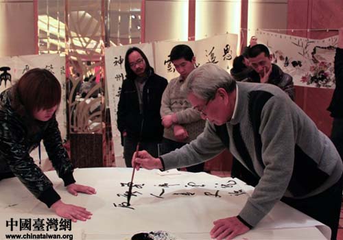 書畫大師在現(xiàn)場(chǎng)潑墨獻(xiàn)寶(陜西省臺(tái)辦 張群莉 攝)