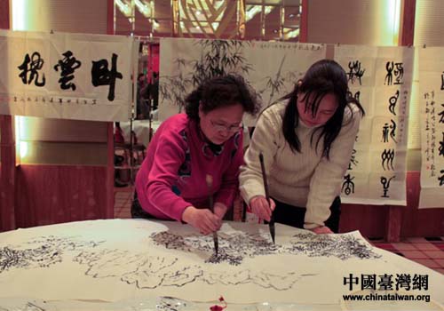 會(huì)上,來自陜西各界的書畫名家、大師們現(xiàn)場(chǎng)揮毫潑墨,切磋技藝,親切交流,氣氛熱烈。大家表示,希望通過書畫交流活動(dòng),進(jìn)一步推動(dòng)兩岸文化交流和繁榮,增進(jìn)兩岸同胞間的民族認(rèn)同感,加深鄉(xiāng)情、親情和友情。(中國(guó)臺(tái)灣網(wǎng)陜西省臺(tái)辦通訊員 張群莉)