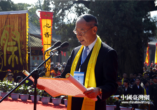 臺灣太平洋文化基金會董事長錢復(fù)恭讀祭文。(圖片來源:陜西省臺辦)