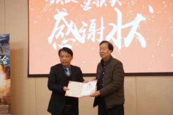 西北大學(xué)藝術(shù)學(xué)院馬永寬書記接受組委會(huì)蕭建華頒發(fā)的感謝狀。(攝影:溫雅)