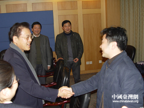 什邡市委副書記、市長李卓會見王端正。圖片來源:德陽市臺辦
