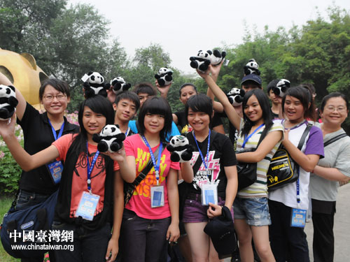 臺灣學(xué)生參觀成都大熊貓繁育基地 親密接觸大熊貓